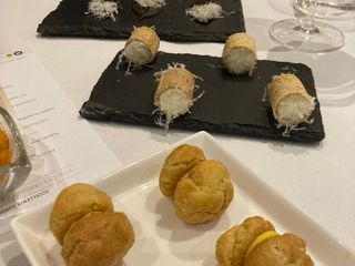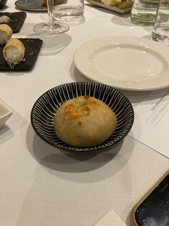 Dopo un’interessante degustazione di diverse stagionature di Grana, e quella di alcuni amuse-bouche con il Grana già protagonista indiscusso, ecco il via al menù, che ha riservato nell’ordine un antipasto di patate, Grana Padano, capesante marinate e uova di aringa, Tortellini al Grana Padano, cardamomo e foie gras, Coniglio ripieno, Grana Padano, spinacino e cumino e Cheese cake, Grana Padano e frutti rossi.