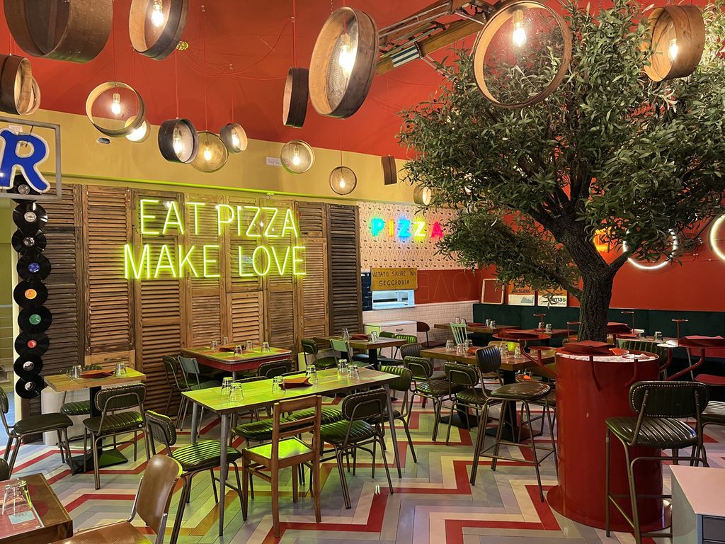 Ultimo tratto distintivo è nel concept dei locali: nessuna pizzeria a vista, colori accesi e fusione tra stile vintage e materiali di recupero. Anche qui la replicabilità la fa da padrone, sebbene ogni singolo punto vendita venga personalizzato con un tocco locale. A Varese quel tocco non può che chiamarsi basket, anche in ossequio alla passione di Mauro D’Errico, ex giocatore della Robur.