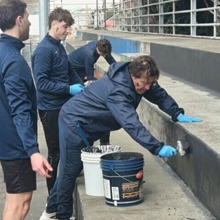 FOTO e VIDEO. I calciatori e lo staff dell’Imperia ridanno colore al loro stadio