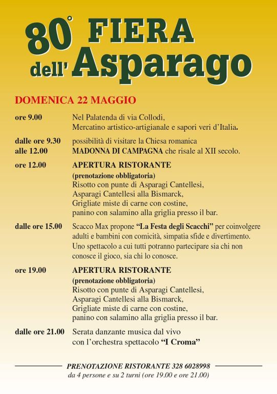 «La siccità prolungata sta dando filo da torcere ai produttori di asparagi già provati da questi due anni - prosegue Premoli - stentano a crescere. Ma ce la faremo, la gente ha voglia di uscire e ricominciare a vivere. Ci scusiamo già da ora se faremo qualche errore ma i nostri 80 anni di Festa verranno festeggiati alla grande».