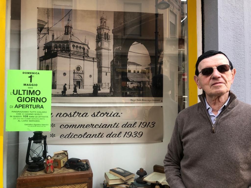 Ma a lui, ad Agostino Valentini, il patron dei giornali e degli scout, non piace la dicitura “chiusura”. «Vede, io ho scritto “ultimo giorno di apertura” – scherza – perché voglio essere sempre ottimista. Anche in questo».Sta di fatto che dal 1913, da quando il negozio era stato inaugurato in via Milano dalle sorelle Tagliabue con un contratto firmato da Bagaini, poi trasferito in via Sant’Antonio e quindi in via Montebello 3 e poi dal 1964 al civico 2, non distribuirà più quotidiani. «I motivi? Intanto abbiamo diritto al meritato riposo – spiega- io ho ottant’anni e non abbiamo trovato nessuno che continuasse questa attività, anche gratuitamente». Sì anche gratis, nessuno vuole sobbarcarsi gli oneri di un’attività. Scoraggiati da burocrazia, informatizzazione, tasse, problemi, non se la sentono di portare avanti un negozio, anche se l’unico in centro.
