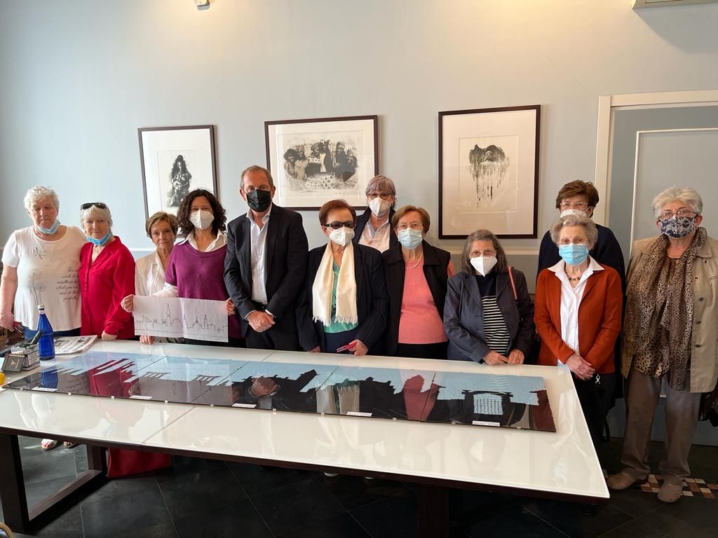 Un’interpretazione davvero originale dello skyline cittadino che è stata consegnata oggi dalle socie, guidate dalla presidente Isabella Moretto, al sindaco Emanuele Antonelli e alla vicesindaco e assessore alla Cultura Manuela Maffioli.