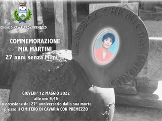 Scomparsa avvenuta a Cardano al Campo, il 12 maggio 1995, mentre è il camposanto di Cavaria con Premezzo che custodisce le spoglie e il ricordo di Mimì, come di suo padre Giuseppe. Proprio il Comune ha annunciato, quasi sottovoce come una carezza, «27 anni senza Mimì, commemorazione di Mia Martini»: un'apertura straordinaria del cimitero, per trasmetterle tutto l'affetto. L'artista aveva 47 anni quando fu trovata priva di vita nella sua abitazione cardanese.