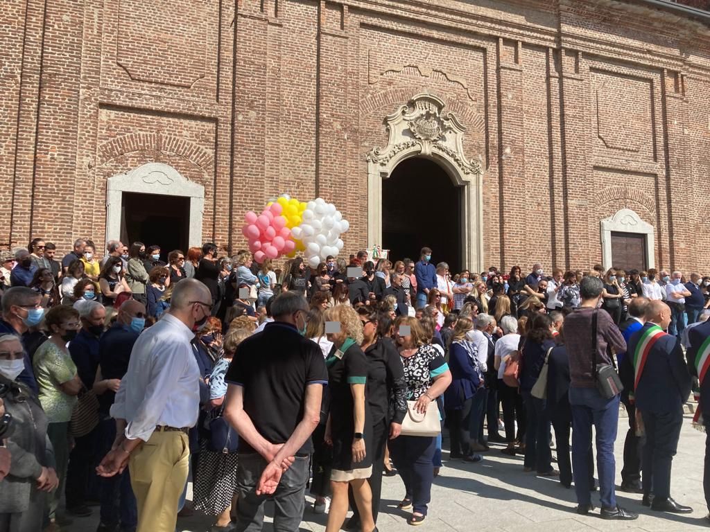 I palloncini stanno per liberare la loro leggerezza e i colori nell'aria, in memoria di Stefania Pivetta e Giulia Maja, davanti alla chiesa parrocchiale di Samarate. Tutti si abbracciano e accarezzano i feretri, ma nonno Giulio si stacca dalla folla all'improvviso.