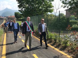 «È un progetto che viene da lontano, il fatto che oggi iniziamo fisicamente a percorrere un tratto è un momento storico. Da qui la pista andrà avanti sul sedime della ferrovia, lì sale e percorre il vecchio tracciato della ferrovia per arrivare al di là della galleria esistente, che è il tratto più bello perché sembra di essere all’interno della pancia di una balena con tutte le costolature».