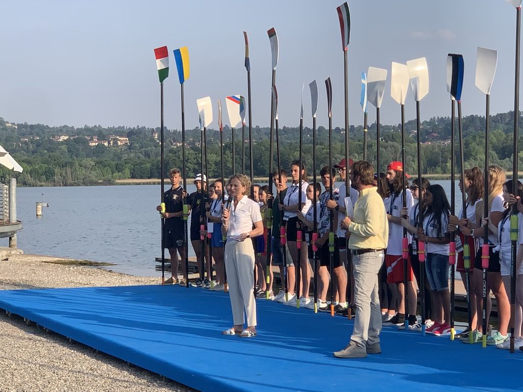 Tutte le nazionali hanno sfilato issando un remo al posto della bandiera, presentate dalla voce del canottaggio varesino e tricolore per eccellenza, Luca Broggini.