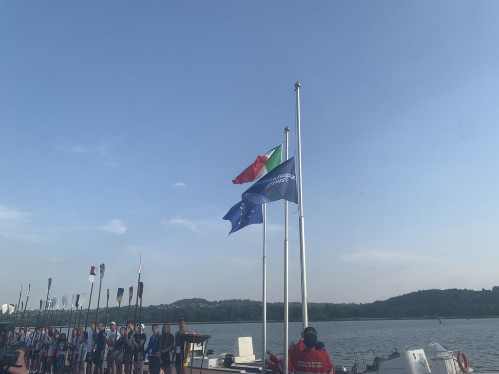 Nel tardo pomeriggio di oggi ecco la cerimonia che ha dato il via alle danze, con un folto pubblico (video) di atleti, accompagnatori, famiglie e curiosi assiepato sulle tribune allestite in riva al lago e intorno a esse.