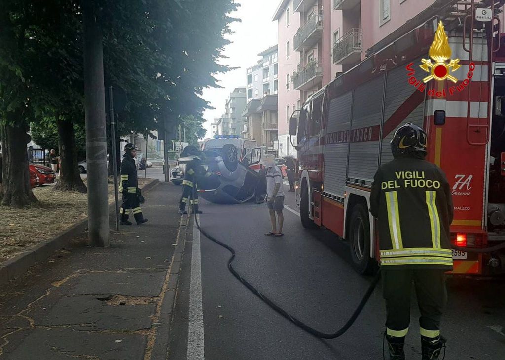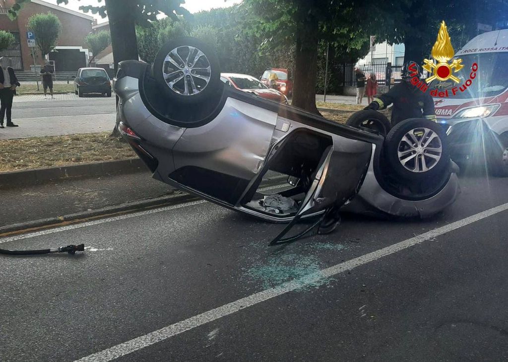 FOTO. Si ribalta con l'auto in mezzo alla strada: attimi di paura a Saronno