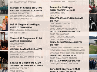 Domenica 19 giugno, ore 17.30 - Terrazza del Mosè (Sacro Monte) - Coro Angelo Vidoletti, Corollario, Coro Unincantodargento