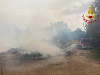 L'incendio, scoppiato nel primo pomeriggio di oggi, ha interessato alcuni cumulo di scarti vegetali
