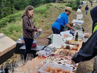 Dopo il colle della Lombarda è stato allestito un lauto banchetto con prodotti tipici preparato dalla piola “A L'Ubac” del Centro Fondo di Festiona, con i vini della Cantina Dogliotti 1870 di Castagnole delle Lanze.