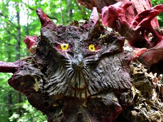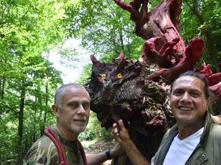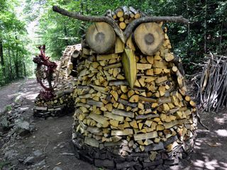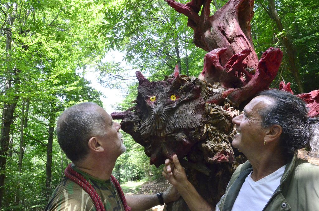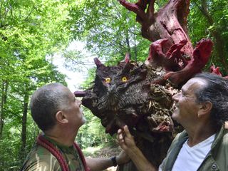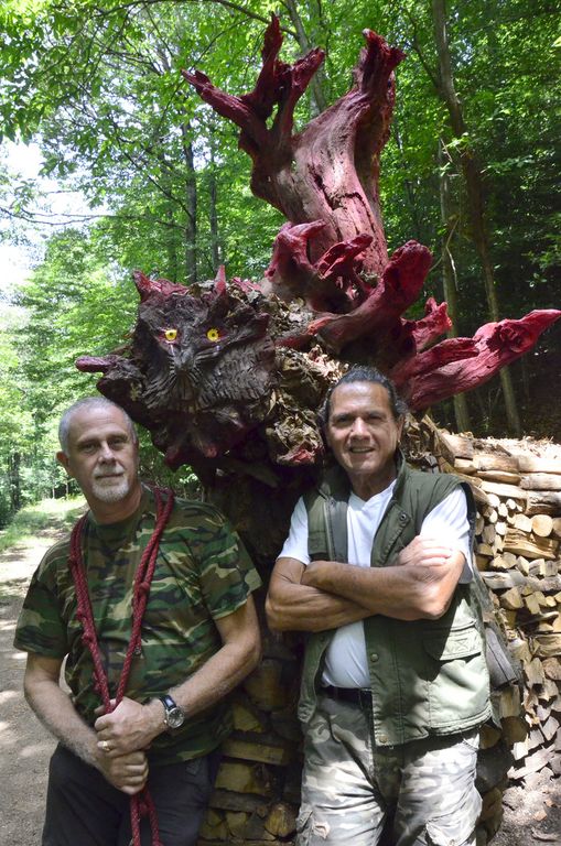I due, peraltro, sono recidivi, perché lo scorso aprile hanno per così dire inaugurato un gufo monumentale in legno di castagno con occhi di ontano nero e tanto di sopracciglia, che visto adesso sembra un abitante di Lilliput a confronto del mostro dalla gobba di chiocciola che avrebbe spaventato pure San Giorgio con la lancia e tutto il resto.