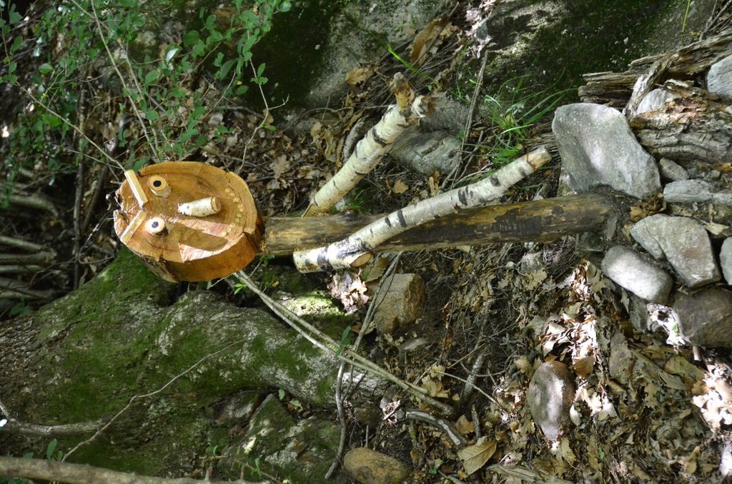 Due mesi a recuperare la legna, pulendo i boschi del Franco della baita del Pradell, che in cambio ha donato la materia prima per lo strambo dragolumaca, che farebbe la felicità degli illustratori di libri per bambini e avrebbe incantato Rodari, con la sua sinuosa silhouette e la coda multiforcuta, naturalmente scarlatta come la testa cornuta, dal muso baffuto e dagli occhi gialli indagatori che spiccano a metri di distanza.