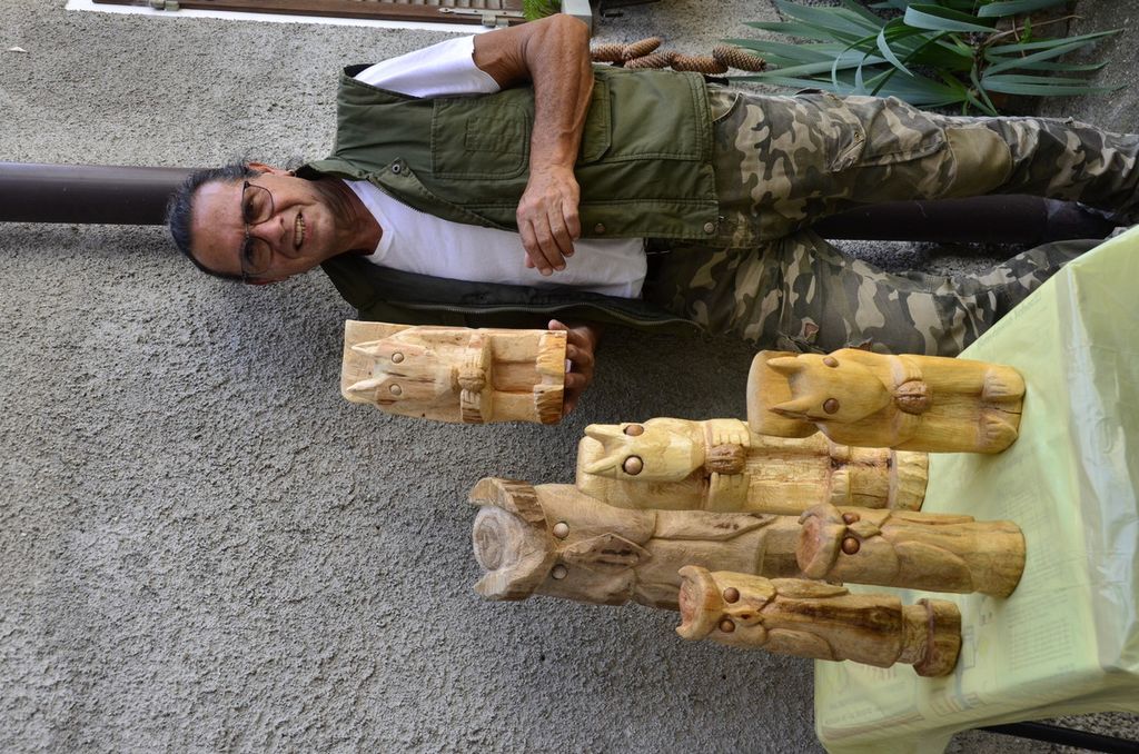 A scolpirli è Antonio, nel suo freschissimo laboratorio nella piazzetta del paese: lì ci sono gufi e gufetti, scoiattoli e lumachine, qualche gatto, tutti in legno di betulla o castagno, un passatempo creativo condiviso con la moglie Maria, che dipinge e assembla piccole sculture di taglio astratto.