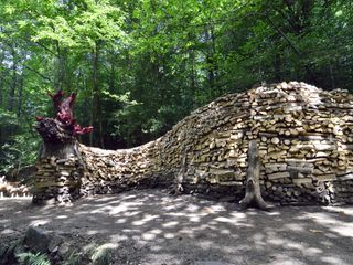 Ed ecco allora il trait d’union tra i matti degli anni ’80 e quelli del paesino della Valganna, Lorenzo Piran e Antonio Coletta, che così per passatempo – perché a Boarezzo non hanno molto altro da fare - hanno accatastato 120 quintali di legna, tagliandola ciocco per ciocco, dando vita a un drago di 15 metri di lunghezza, con una testa di radici dipinte in rosso fuoco.