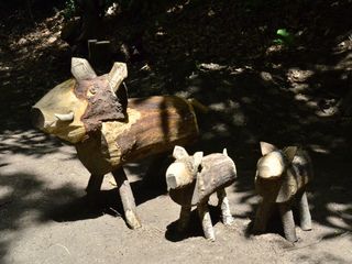 Il bestiario di Piran e Coletta è variegato, perché oltre al gufo e al dragolumaca sono arrivati una famiglia di cinghiali, un cervo e un non meglio identificato Omino del Bosco, che dà il benvenuto ai passeggianti in queste contrade, molti in questa stagione, anche per il richiamo dei legni zoomorfi che fanno il pieno di like nei social network.