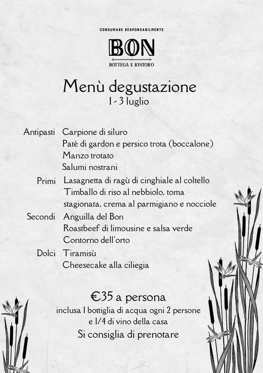 Dietro al bancone, ecco una cucina a suggerire il prosieguo della storia. Siamo partiti dal seme, arriviamo al piatto. Bon, da domani venerdì primo luglio, giorno dell’esordio ufficiale, sarà anche ristoro: la bottega sarà il suo “magazzino” principale. Nel primo menù ci troverete i pesci del lago, presto anche in vendita, come il carpione di siluro e il paté di gardon e persico trota. E poi l’anguilla, e il timballo di riso al nebbiolo con toma stagionata, crema al parmigiano e nocciole.