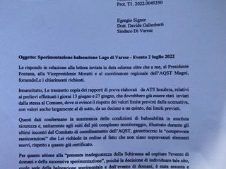 Alla Schiranna, accompagnato dal vicesindaco Ivana Perusin e dall'assessore all'Ambiente Nicoletta San Martino, il sindaco di Varese Davide Galimberti ha firmato l'ordinanza che consente la balneabilità in tre punti diversi nella stessa Schiranna: nelle acque davanti alla "spiaggia dei fotografi", tra il Lido e la Canottieri Varese, in quelle prospicienti parco Zanzi (ma non presso il pontile del Lido) e in quelle oltre la Canottieri e presso i due ristoranti presenti in loco.