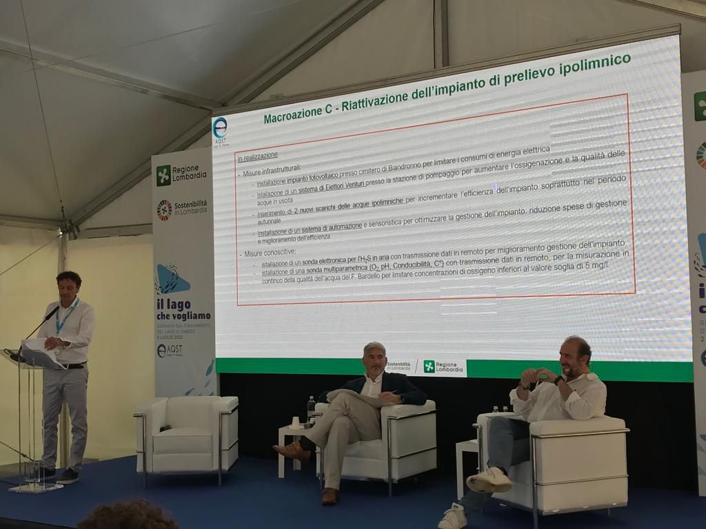 Nel tendone situato nel prato del parco si è tenuta una conferenza in cui diverse personalità che hanno contribuito al progetto sono intervenute. Il parterre delle istituzioni che hanno presenziato all’evento lascia intendere la notevole importanza di questa giornata: Davide Galimberti, Attilio Fontana, Emanuele Antonelli, Matteo Bianchi, Giancarlo Giorgetti, Raffaele Cattaneo, Letizia Moratti, Emanuele Monti, Samuele Astuti, ma anche Fabio Lunghi, presidente di Camera di Commercio, il segretario generale Mauro Temperelli, così come Paolo Mazzucchelli, che di acqua, con Alfa srl, se ne intende, e moltissimi altri, tra cui gli assessori varesini Ivana Perusin, Stefano Malerba, Andrea Civati, Nicoletta San Martino, Raffaele Catalano.