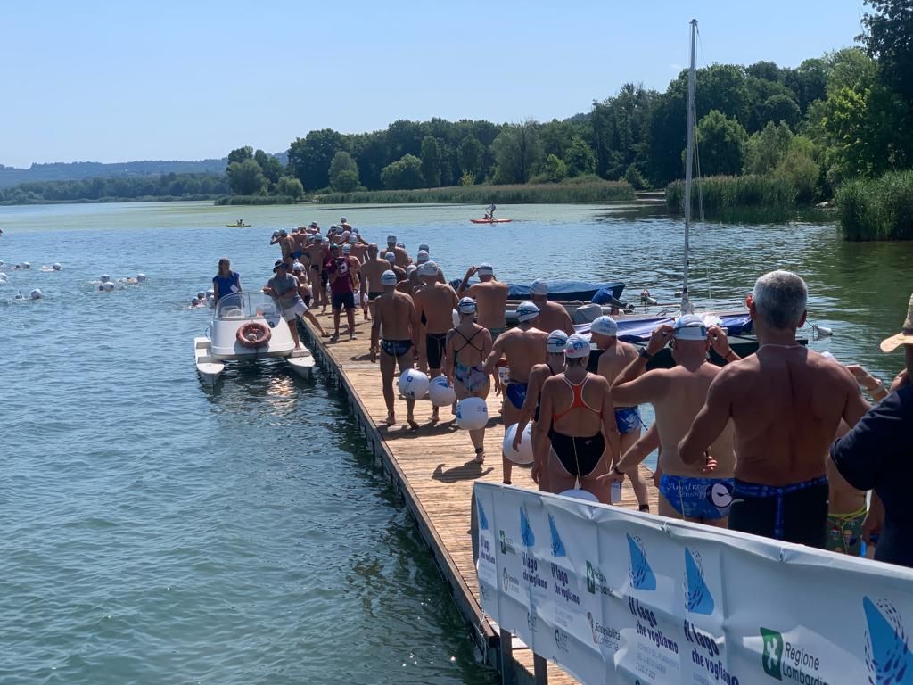 Alle 11.30 via alla traversata, preceduta dal taglio del nastro della sindaca di Bodio Eleonora Paolelli (arrivata su imbarcazione proprio dalla Schiranna): gli atleti si sono portati in acqua a qualche decina di metri dalla riva a da lì sono partiti per affrontare 1,8 km di bracciate verso l'altra sponda.