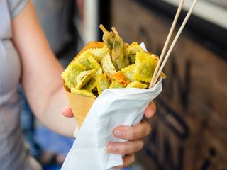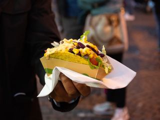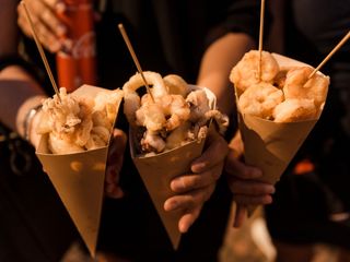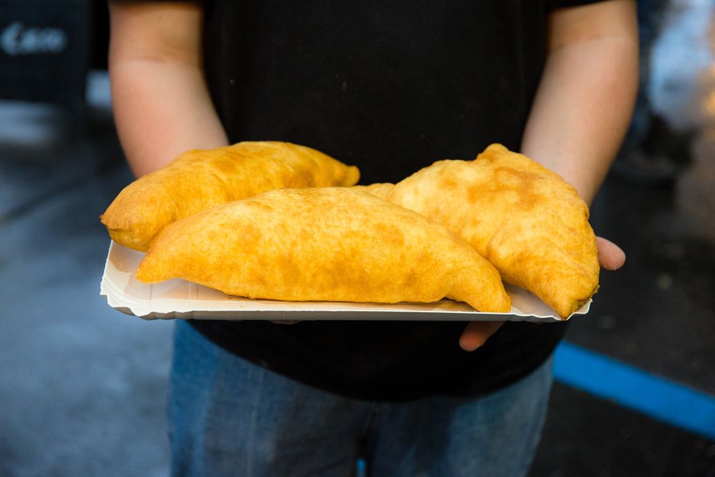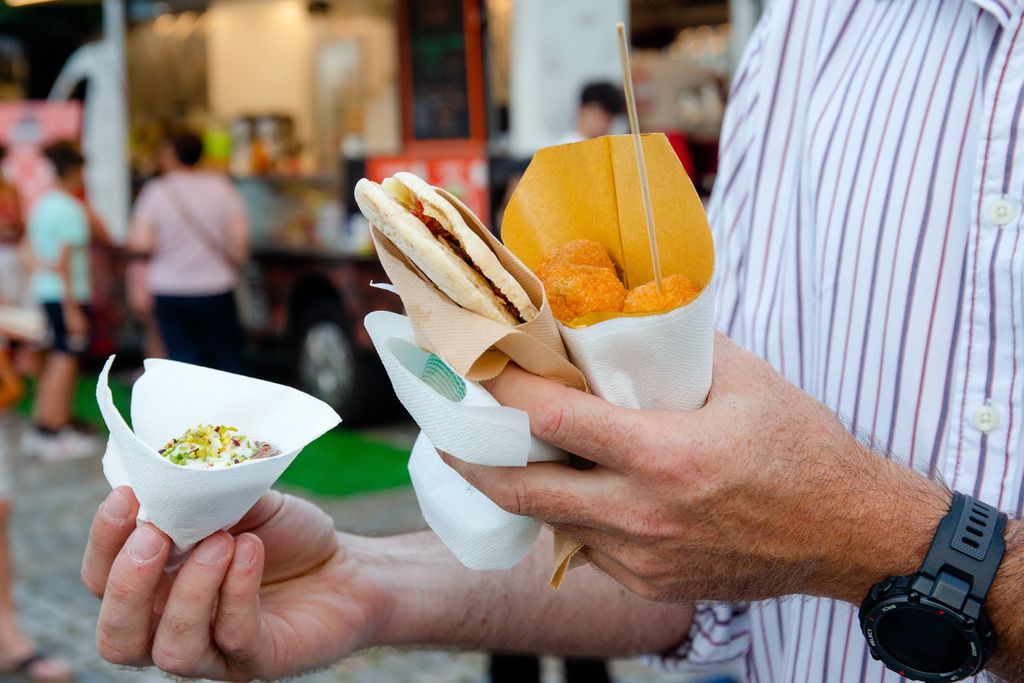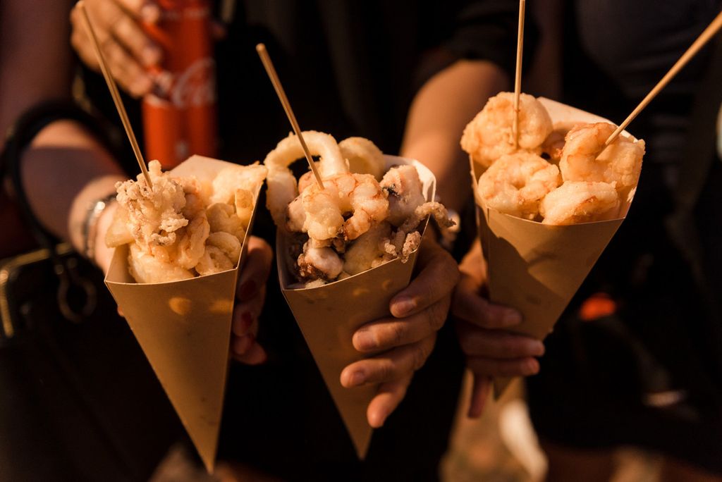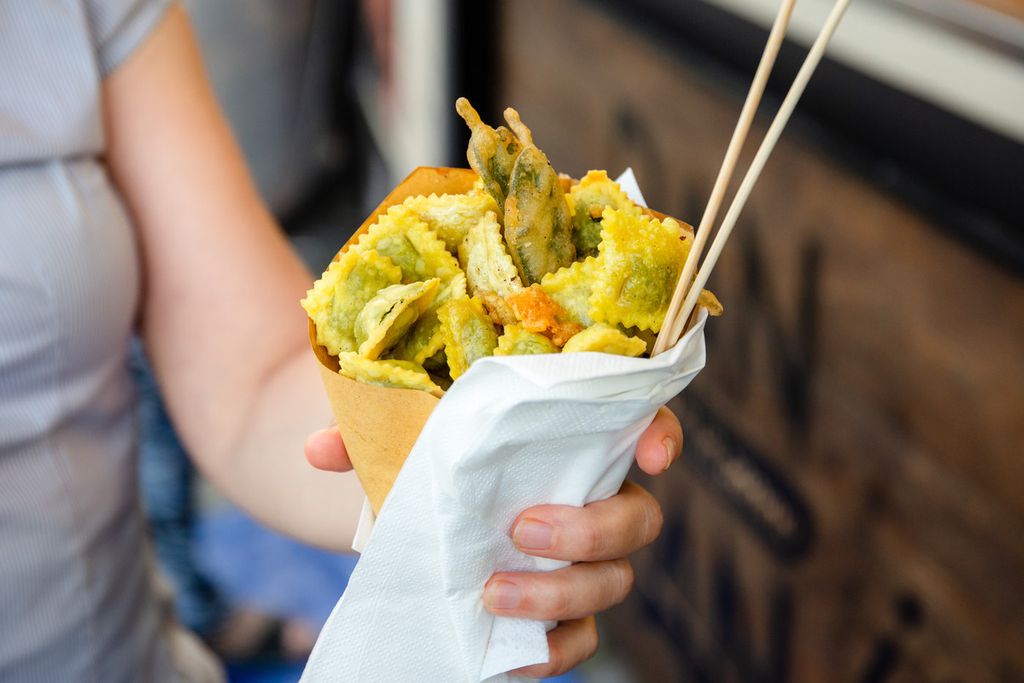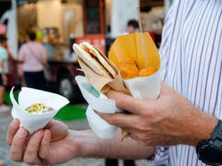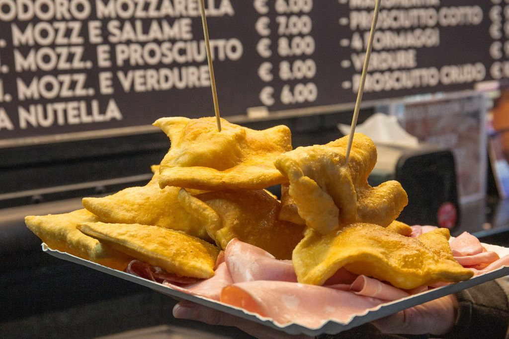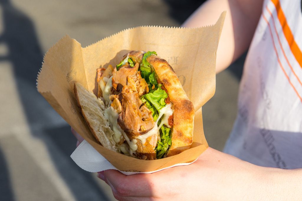 Oppure, qualche piatto della tradizione, come lo gnocco fritto con salumi e Nutella di Che Gnocco o Pane e panelle, pane cunzato, mini arancini, carne di cavallo, cannoli siciliani riempiti al momento e cassatine de I sapori di Sicilia, piuttosto che le polpette di carne e verdure (oltre a vini e cocktail) di Na Pinta Vineria Vagabonda.