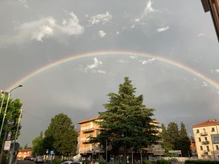 C'è poi una foto talmente bella da sembrare un fotomontaggio: arriva da Varese in zona via Crispi, dove una corona si staglia nel cielo di questo 4 luglio arcobaleno.