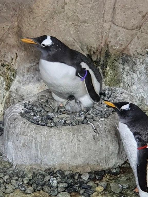 La vasca subantartica, dedicata proprio ai pinguini, ha visto la nascita di un pinguino Papua, nato dalla coppia formata da papà Kowalski, primo pulcino della sua specie a nascere all’acquario nel luglio del 2017, e mamma Rosi e di tre pulcini di Magellano.