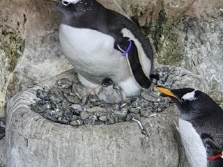 Il piccolo Papua è nato il 3 luglio scorso da un uovo deposto il 25 maggio nel nido di ciottoli fatto da papà e mamma. I genitori hanno covato alternativamente l’uovo e ora si stanno occupando di nutrirlo e di proteggerlo. Il piccolo è visibile dal pubblico nel suo nido, all’interno della vasca dei pinguini, tra le zampe dei genitori che si alternano ad accudirlo.