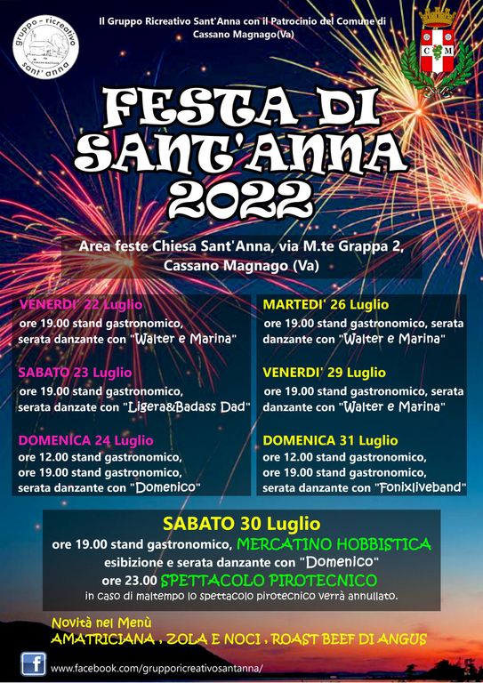 La festa di Sant’Anna apre i battenti. Supera i due anni di stop per Covid e riparte nonostante i ladri che hanno fatto sparire attrezzature indispensabili. Perché la voglia di incontrarsi e di rilanciare è più forte delle avversità, siano esse una pandemia o l’azione di malintenzionati. La sagra torna, dunque, con il suo “marchio di fabbrica”, il panino “Sant’Anna”: lonza di maiale, cipolla stufata, pomodorini. Contorno di patatine.