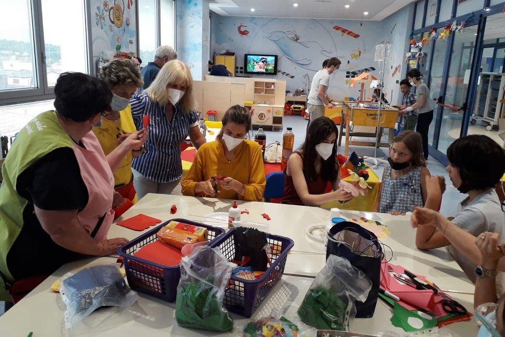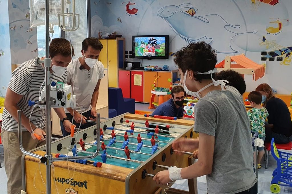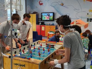 La scelta è caduta su Il Ponte del Sorriso, che ha quindi accolto il piccolo gruppo all'Ospedale Del Ponte, lo ha accompagnato nei vari reparti illustrando il percorso artistico per poi coinvolgerlo nelle attività della sala giochi in Pediatria, dove il team si è intrattenuto a lungo con i bambini e i ragazzi ricoverati, giocando a calcetto, imparando a fare i fiori di carta e facendo divertire i più piccoli con il gioco simbolico.