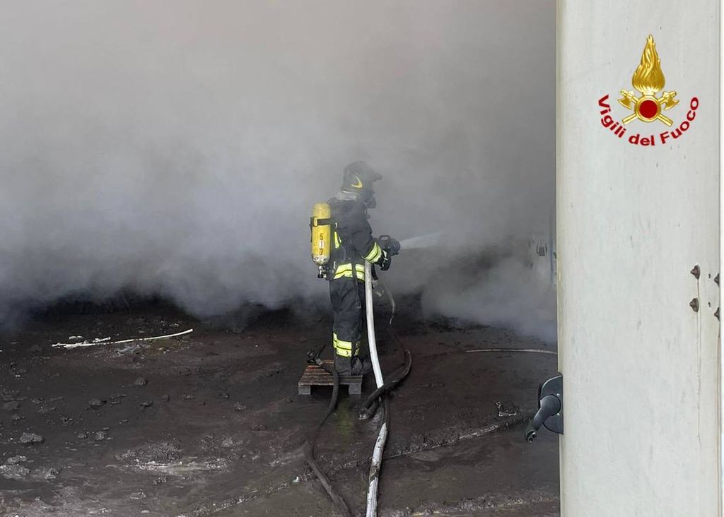 FOTO. Incendio in una ditta chimica a Uboldo, in azione i vigili del fuoco