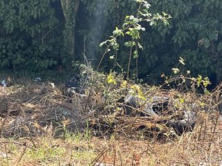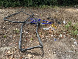 Pneumatici abbandonati e una bici rotta: mobilità insostenibile, verrebbe da dire. Ma l'ironia non può che essere amara, all'ombra di Villa Calcaterra.