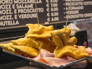 Tra i piatti locali, arrosticini abruzzesi, pane e panelle, pane cunzato, mini arancini, carne di cavallo, Pan tometta, Pan Tartufo, hamburger di Fassona, stracotto al Barolo, tomahawk di Suino Piemontese, tartare di Fassona e vitello tonnato, specialità con polpo e cipolla caramellata, carpaccio di polpo, gnocco fritto con salumi, panzerotto e pinsa romana, panini con suino nero calabrese affumicato, bocconcini di pollo fritto, cotoletta e alette di pollo, frittura di pesce e panini gourmet con pesce, polpette di carne e verdure.
