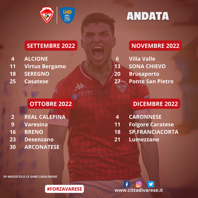Qui sotto i gironi A e B, le sfide casalinghe del Varese postate sulla pagina Facebook ufficiale della società biancorossa e, in allegato, il file con i calendari completi