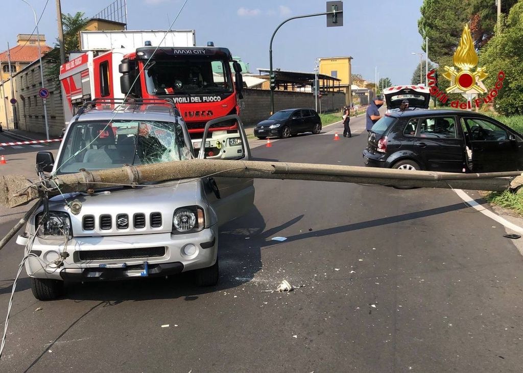 Paura a Busto per uno scontro tra auto: una finisce contro un palo e lo abbatte