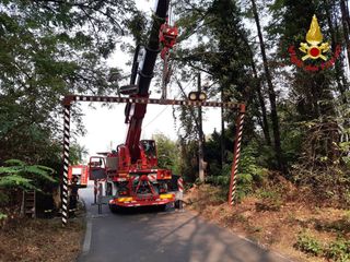 Vergiate, portale stradale rischia di rovinare sull'asfalto. I vigili del fuoco mettono in sicurezza l'area
