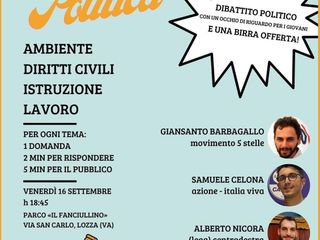Venerdì 16 settembre, la Consulta giovanile di Lozza propone l’appuntamento dal titolo “Birretta Politica”. A partire dalle 18.45, presso il parco “Il fanciullino”, si terrà un dibattito politico con un occhio di riguardo per i giovani e una birra offerta.