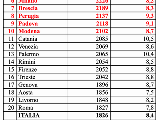 La città più virtuosa è Campobasso, con un'inflazione del 7,5% e una spesa aggiuntiva per una famiglia tipo pari a "solo" 1373 euro. Segue Catanzaro (+7,5%, +1401 euro) e Reggio Calabria (+7,6%, +1419 euro).