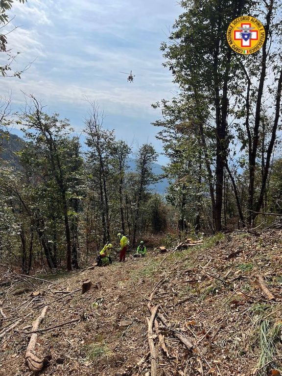 Soccorso alpino in azione a Dumenza: ventenne si ferisce mentre lavora nel bosco