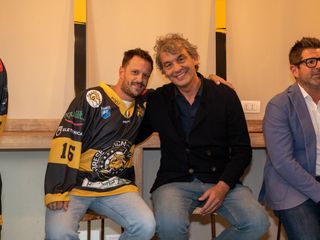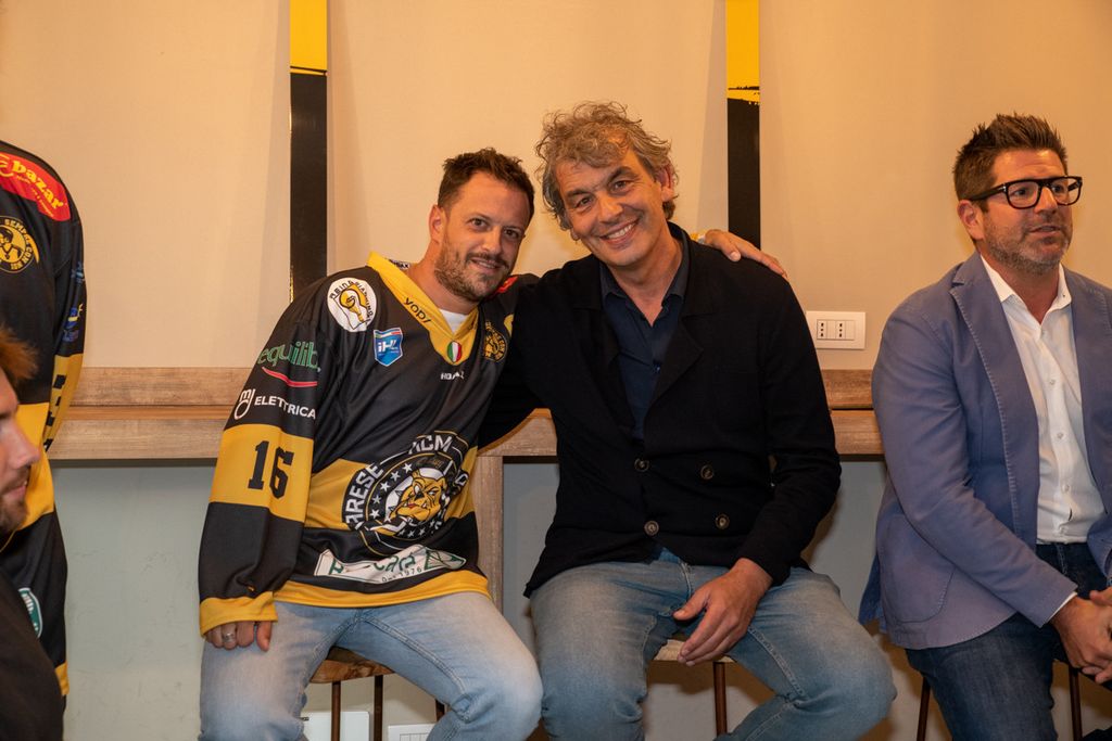 L'applauso dei tifosi presenti al Caffè Beccaria, che domani si trasferiranno a Bressanone per l'esordio in campionato delle ore 20 (ci sono ancora un paio di posti sul pullman di Mastini Forever, per aggregarsi basta chiamare il numero 348 2254089) è per la chiusura del padrone di casa, Claudio Pucci, che non dimentica la sua vita da portiere giallonero: «Il portiere è il 50 per cento dell’hockey - dice dopo essersi complimentato con il costruttore della squadra, Matteo Malfatti, seduto al suo fianco - Ottimi acquisti, avrete soddisfazioni. Ma lasciatemi dire due cose sui portieri: Perla è più all style, più reattivo con magari un pizzico di fisicità in meno, dall’altra Dalla Santa è un portiere di posizione che sfrutta proprio il fisico per coprire la porta. Coach Claude Devèze (seduto accanto a lui), avrà un bel compito. Mi fa molto piacere proprio che Claude sia tornato, è una bellissima persona. In bocca al lupo, ragazzi».