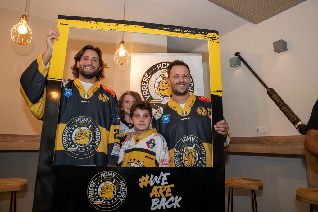 «È un bellissimo giorno perché vediamo i ragazzini gialloneri insieme ai giocatoti della prima squadra - ha detto il presidente dell'HCMV Varese Hockey, Carlo Bino - io e Matteo volevamo questo dal primo giorno. L'obiettivo comune è vedere da qui a 5-6 anni due linee dei Mastini provenienti dal settore giovanile. Ai grandi dico di realizzare i sogni dei più piccoli. Il mio è quello di avere altri sponsor condivisi che sostengano sia la prima squadra che il progetto giovanile nel nome dei Mastini».