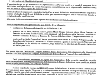 Sarà il giorno della Granfondo Tre Valli: due percorsi, uno lungo (126 km) e uno medio (99 km), con partenza alle ore 9 in via Sacco e arrivo sempre in via Sacco (la chiusura è prevista intorno alle 15.30).