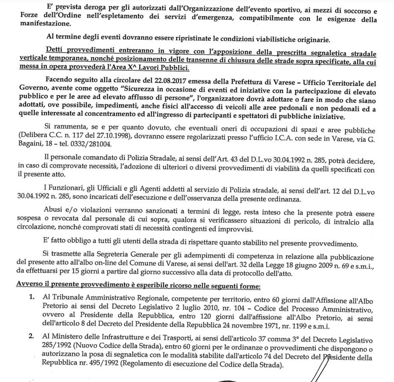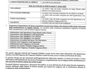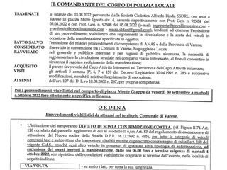Ieri la Polizia Locale di Varese ha reso note le ordinanze relative: ecco le linee guida per le giornate dell'1, 2 e 4 ottobre. Per il dettaglio vi rimandiamo alle foto allegate, con le quali pubblichiamo il testo integrale delle ordinanze.