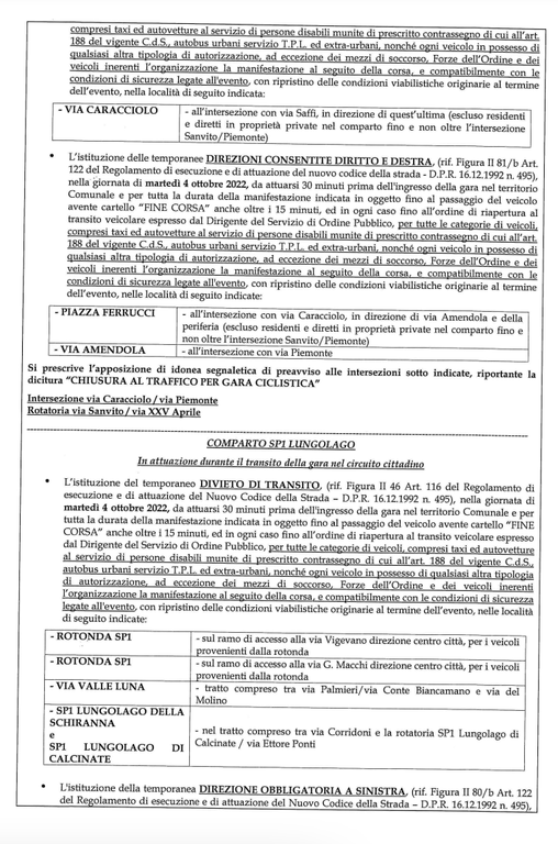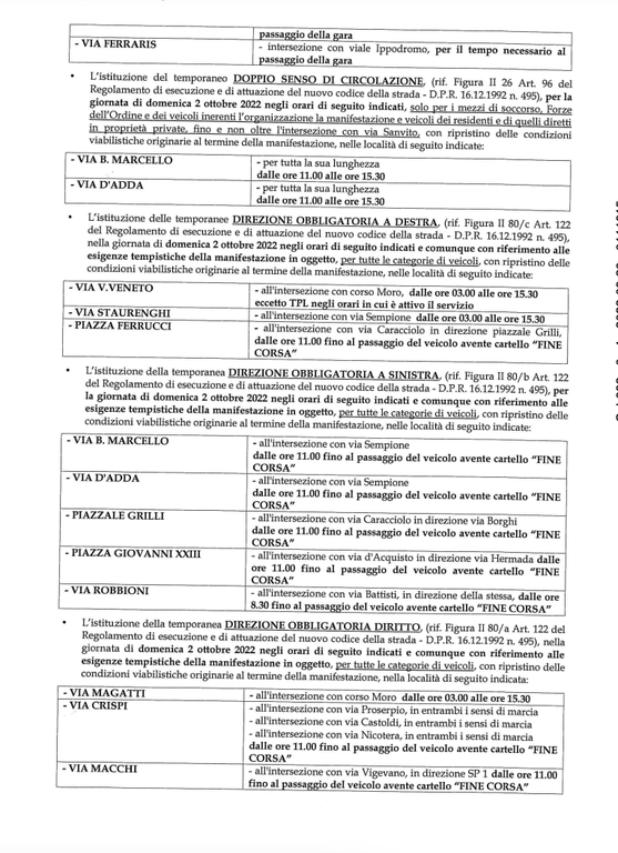 Nelle stesse zone sarà in vigore per tutta la giornata di domenica il divieto di sosta. Vedi foto per tutti i dettagli.