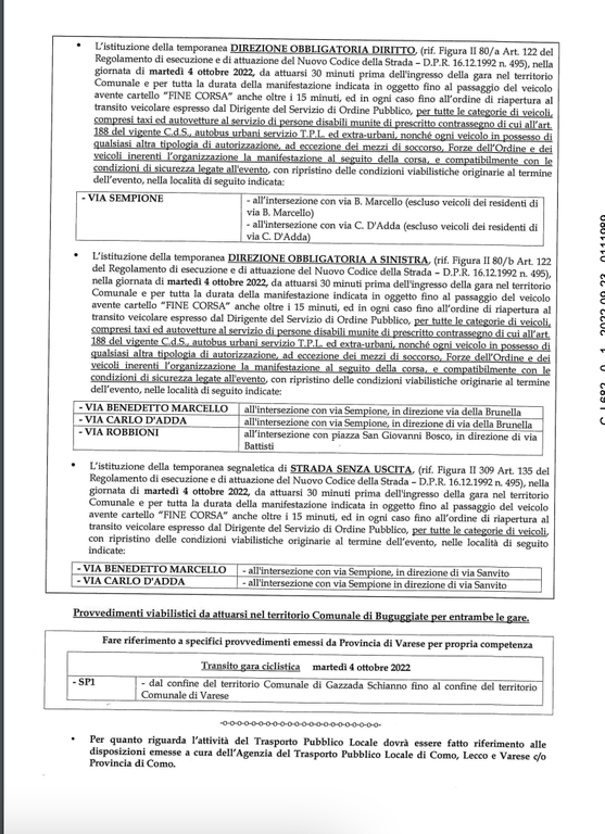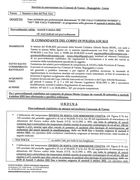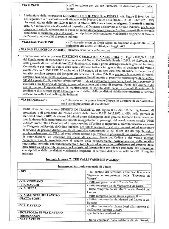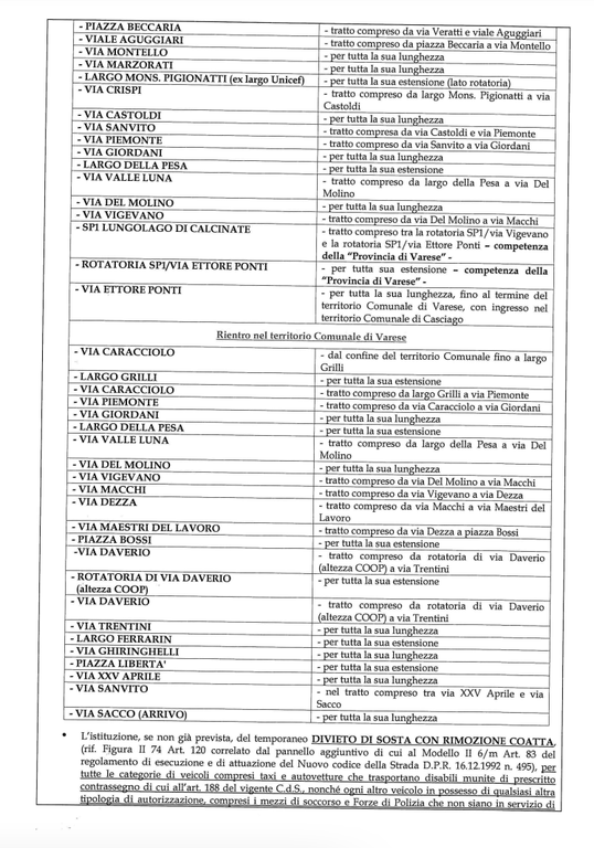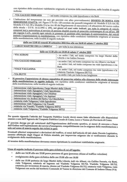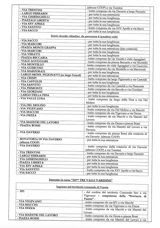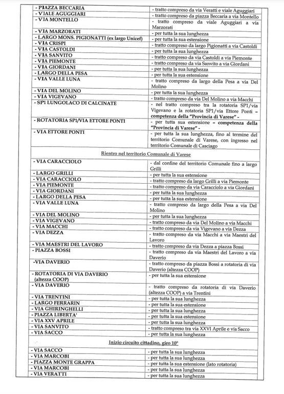 La gara - e le relative interdizioni (divieto di transito, sosta etc) interesserà i seguenti quartieri del centro, di Bobbiate, di Casbeno, di Masnago, di Calcinate del Pesce, Valle Luna e Schiranna.