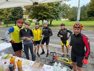 Il tempo di allestire e preparare il ristoro dell'arrivo e verso mezzogiorno ecco arrivare i primi ciclisti sorridenti, sia per la giornata di sole ma soprattutto contenti di aver unito i pedali per sconfiggere queste malattie.