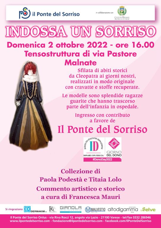 Una sfilata di abiti storici, da Cleopatra ai giorni nostri. È “Indossa un sorriso”, l’evento che si terrà domenica 2 ottobre a Malnate.