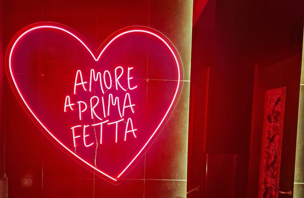 “Amore a prima fetta” è il suggestivo slogan del locale, dettato appunto dall’abitudine a sfornare pizze, sia al trancio sia classica, a forma di cuore.