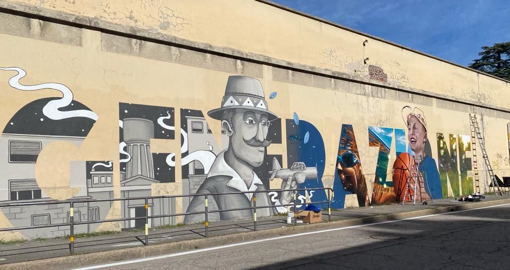 Dopo la notizia dei lavori di rimozione dell'amianto (leggi qui), nella giornata di oggi è comparso sui muri esterni che danno su via Sanvito Silvestro un grande e piacevole murales.