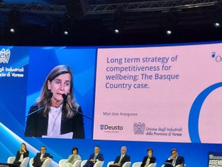 A proposito di contributi, dopo la relazione del presidente di Univa è intervenuta Mari Josè Aranguren, professoressa e Direttore Generale dell’Istituto Basco per la Competitività, che ha illustrato un caso di eccellenza di ridisegno competitivo territoriale nell’area Nord della Spagna.
